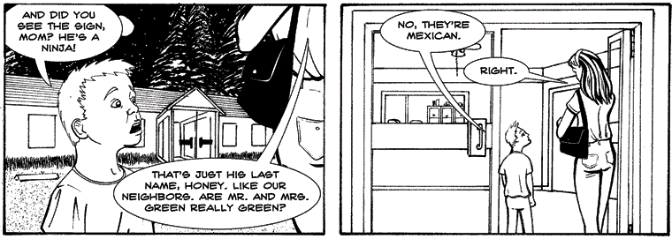 ReplyDeleteWhile the McNinjas are definitely imperfect, I actually think the story works better for them being that way. An enlightened, socially conscious and morally responsible family of ninjas could make for an interesting story, but it would be a very different story than the one we have, and not necessarily for the better.
