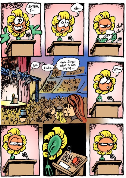 When you read Bob the Angry Flower, you’ll see unexpected images, some of them beautifully grotesque, and many of them unadulteratedly amusing. There’s love, loss, rage, power, war, acceptance, philosophy, and a deep appreciation for scientific advancement. One of Bob’s few constants is that he places himself firmly in the intellectual elite, so depending on your outlook, there are times when you may identify with him ( such as when he rails against incorrect apostrophes) or think he’s being comically overreactive (such as when he rails against incorrect apostrophes).