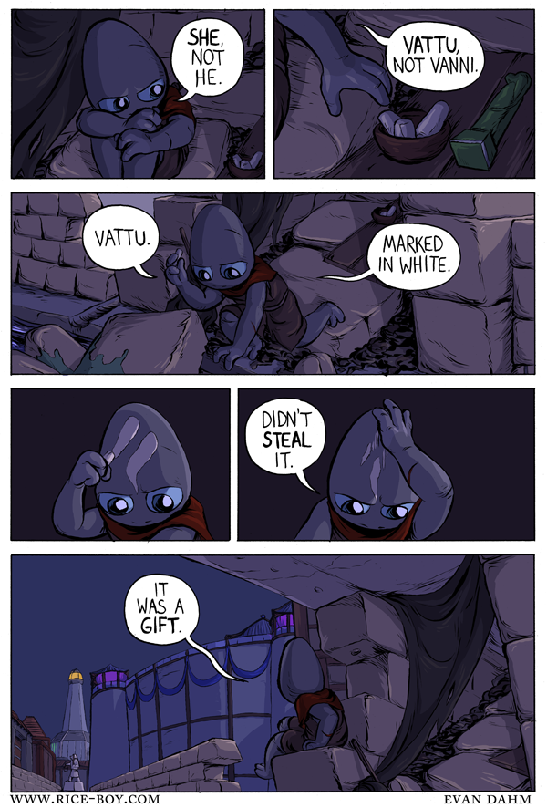 That’s not to suggest that Vattu is slow-paced. There’s plenty of action and excitement, and a few key events have gone by so quickly that initially I found it hard to believe they’d actually happened. It’s also a quick read. At this point, I can get through the archive in a couple of hours. I wouldn’t necessarily recommend reading it that fast, because then you miss a chance to linger on details, but you don’t need to be worried about getting bogged down in a long, intractable story.